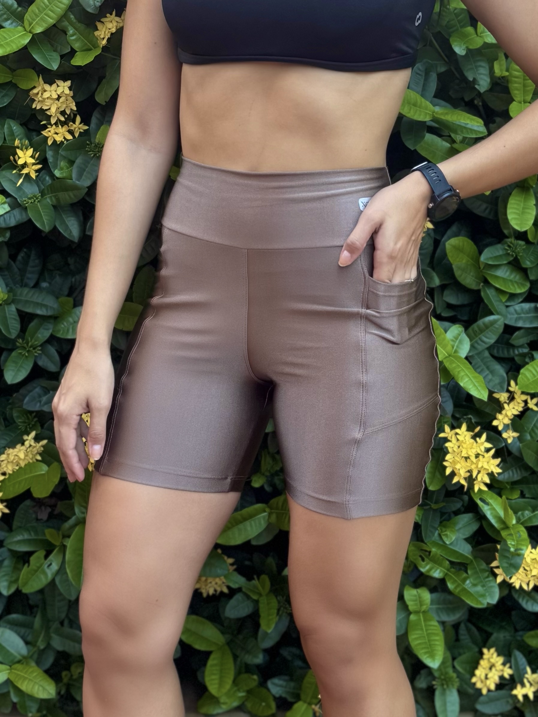 A bermuda possui cós alto, tem bolsos nas laterais para você levar o que quiser durante a atividade física, valoriza a silhueta feminina.