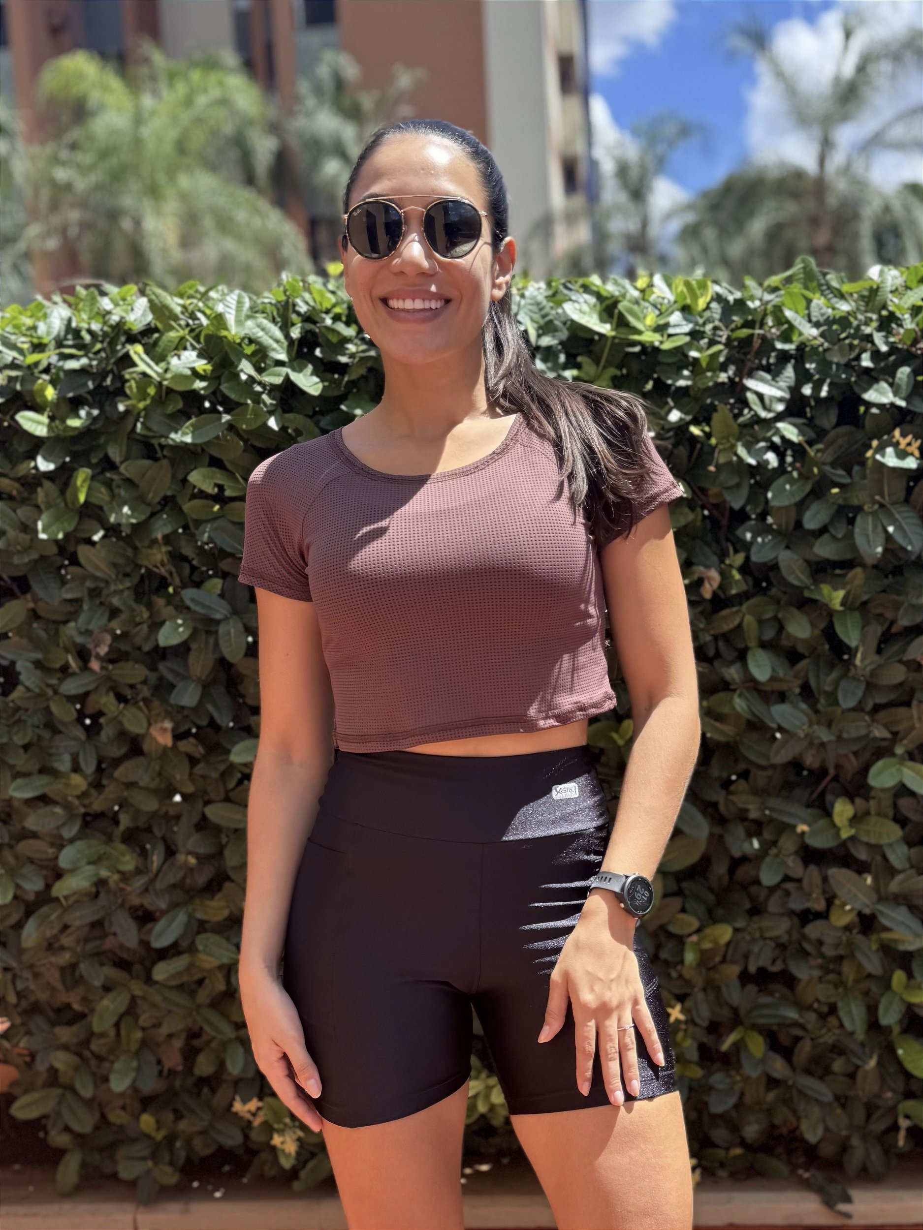 Tecido dryfit furadinho e proteção UV.